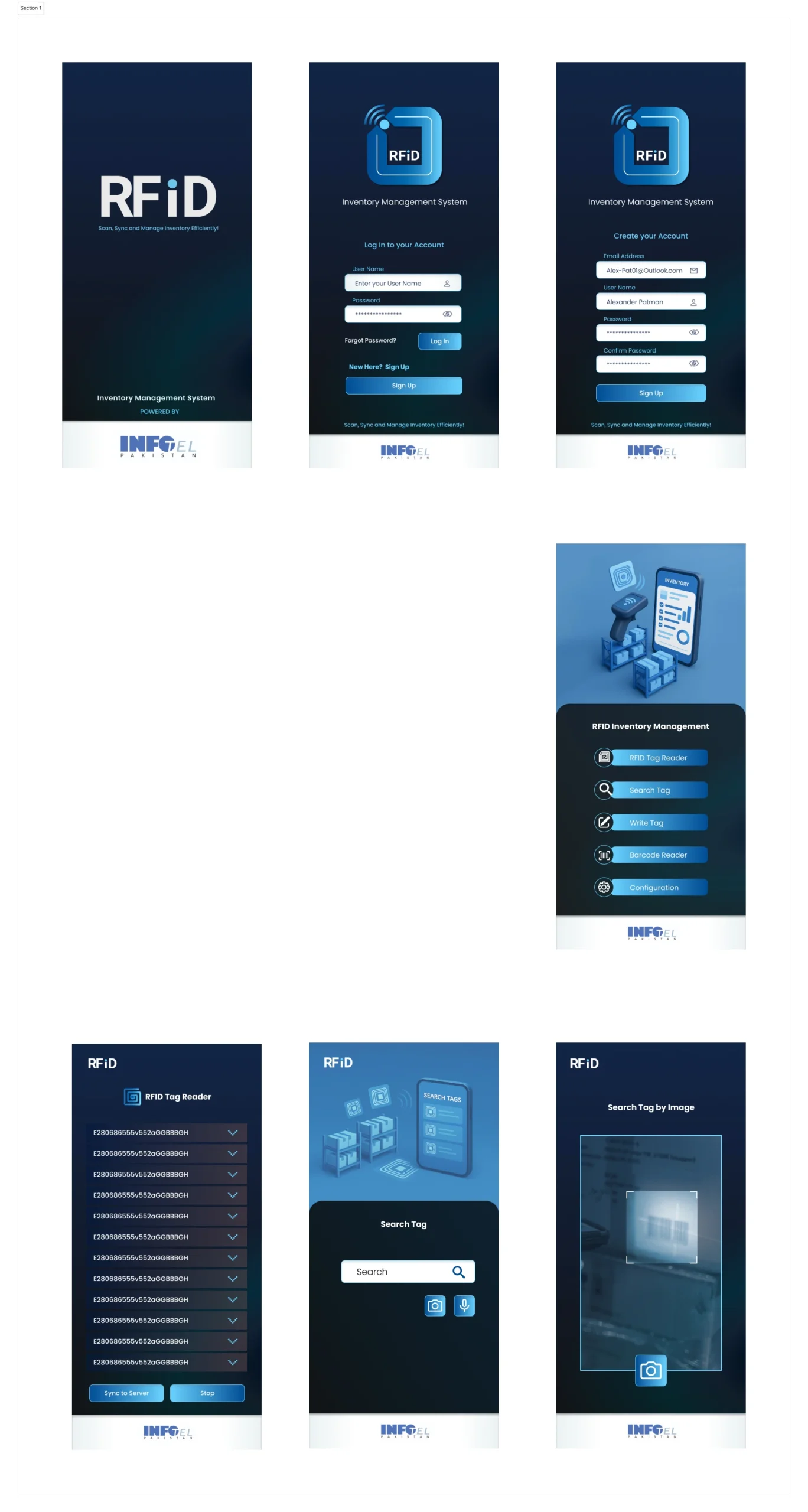 I worked on the UI design for Infotel’s RFID app, using Figma to create a clean and user-friendly interface. The company requested a blue color scheme to match their tech-oriented branding, which I applied throughout the design. I also designed the app icon to keep the look consistent. The final result is a simple, functional design that aligns with the brand’s vision.