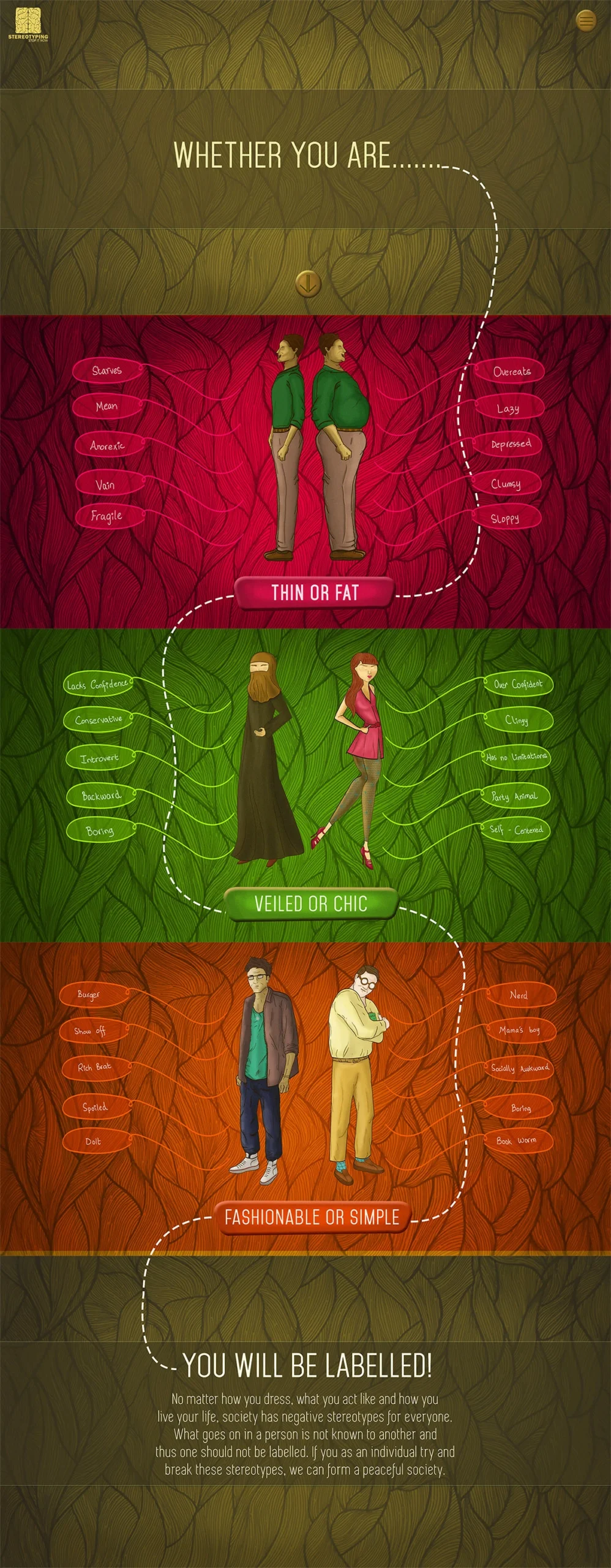 I designed a campaign addressing stereotyping through bold, research-based infographics.